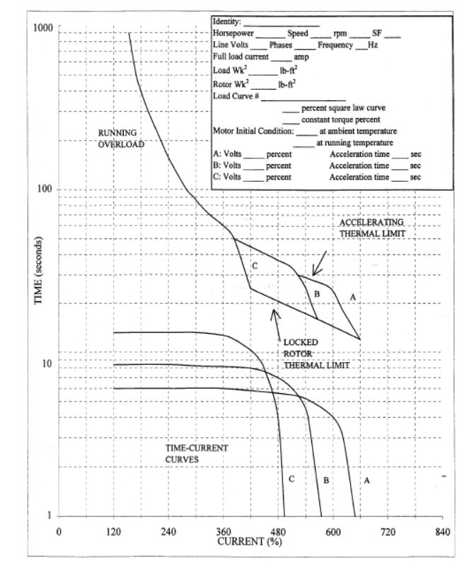 전동기 시간-온도곡선으로, 전동기가 기동 또는 운전될 때 열적으로 손상되지 않는 범위를 나타내는 것으로, 보호계전기가 보호할 범위를 선정할 때도 활용한다.