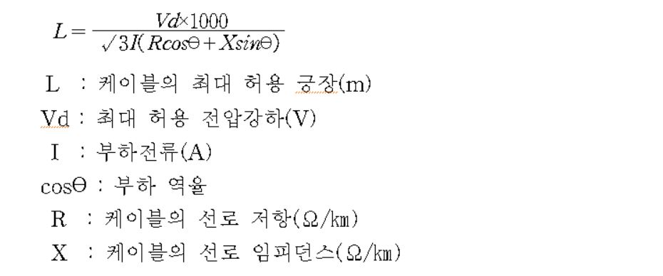- 전동기 부하의 최대 허용 긍장은 기동시와 전부하 운전시의 최대 허용 긍장을 각각 계산하여 짧은 긍장을 택함