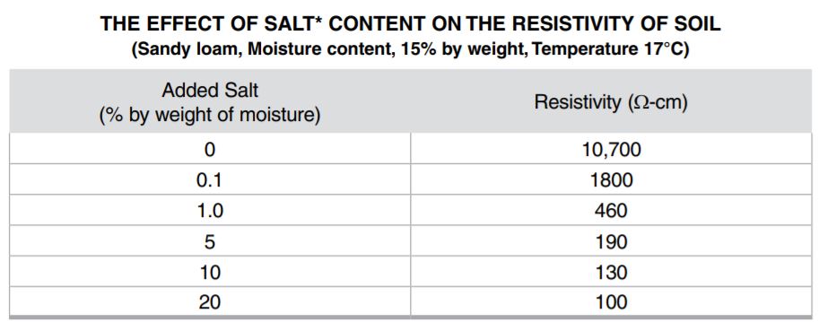 - 수분 함량이 많은 곳으로 선택하면 접지저항을 훨씬 쉽게 얻을 수 있고, 10%이하면 접지 저항이 크게 상승합니다.