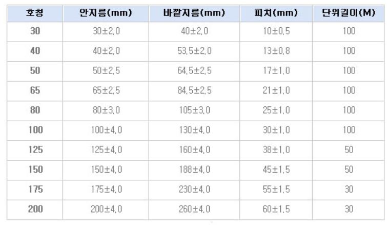 PE관 규격은 아래와 같은데, 54호 이상은 규격이 없다고 합니다.