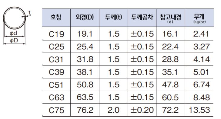 호칭이 홀수인 전선관으로 바깥지름이 기준이며, 두께가 얇은 관을 지칭, 두께는 1.6-2.0mm 범위에 있습니다. KSC 규격에 있는 관의 무게 계산은 w=0.02466 T(D-t), t는 관의 두께, D는 관의 바깥지름으로 결정됩니다.
