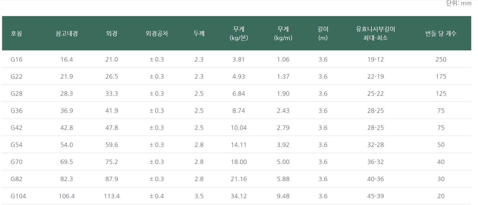 오늘은 금속제 강제(鋼製, 강철로 만든 제품)전선관에 대한 포스팅으로, 국가 규격인 KSC 8401(IEC 60981-A)-2016이 강제전선관(rigid steel conduits) 규격이고요. 강제전선관 관의 종류는 후강전선관, 박강전선관, 나사없는 전선관 3종류로 정해져 있습니다. KSC규격에 정해진 강제전선관 길이는 3.6m이며, 허용오차는 ±5mm로 규정되고 있습니다. 예전 규격에는 후강전선관이 내경, 박강전선관이 외경을 기준으로 하였는데, 2016년 규격에는 동일하게 바깥지름으로 명기하고 있습니다.