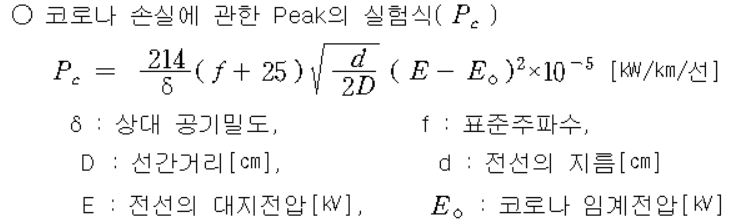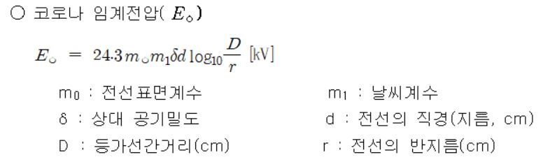 ⇒ 따라서 코로나 임계전압을 크게 해 코로나손실을 방지하려면 전선의 직경은 크게 해야 한다.