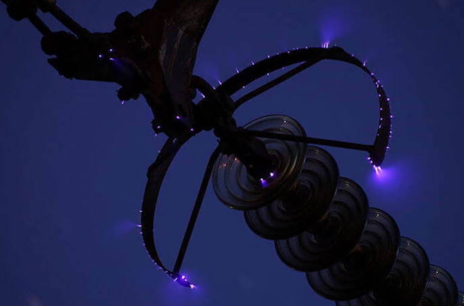 보통 전선로나 애자 부근에 임계전압 이상의 전압이 가해지는 경우 공기의 절연이 부분적으로 파괴되어 낮은 소리나 엷은 빛을 내면서 방전하는 현상으로 표현합니다. 한마디로 정리하면 공기가 견딜 수 있는 절연내력 한계를 초과하는 경우에 발생하는 현상입니다. 아래의 그림과 같이 빚이 나거나 비가오면 변전소 근처에서 웅웅거리는 소리가 이러한 현상때문에 발생하는 소리입니다.