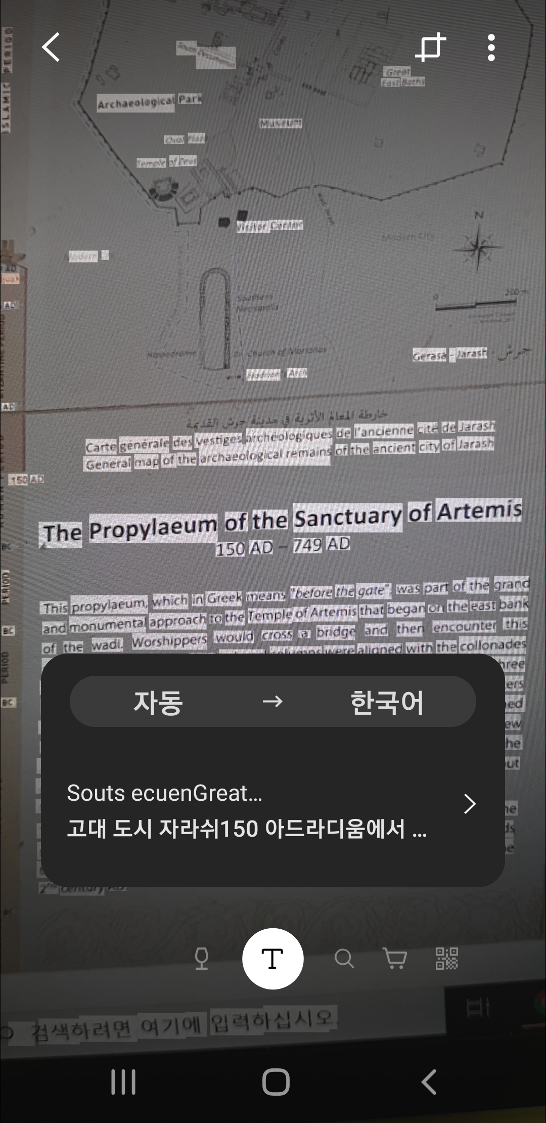 빅스비 비젼에는 제가 유용하게 사용하는 기능은 크게 두가지 인데, 예를 들어 요르단에 간 경우 영어와 요르단언어 안내문이 있는데, 영어로 읽고 있다보면 벌써 일행은 저기 가고 없죠. 그래서 빠르게 한국어로 번역을 해야는데, 구글에 그 많은 글을 입력하기도 어려운데 우리의 빅스비비젼이 한 일 합니다. 아래같은 안내문을 만나시면