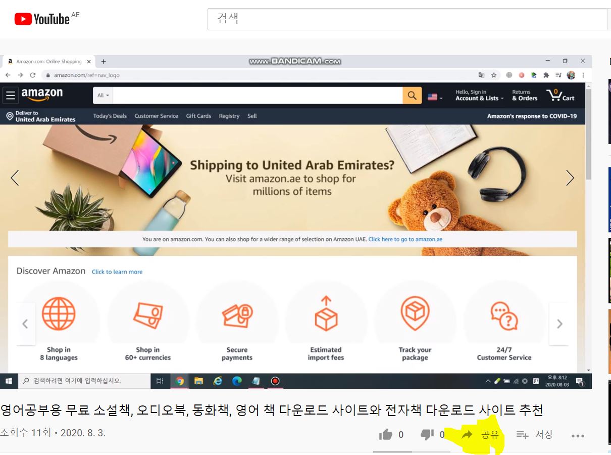 먼저 유투브에서 원하는 동영상주소를 가져옵니다. 유투브 동영상 아래에 보시면 공유라는 것이 있는데 클릭하시면