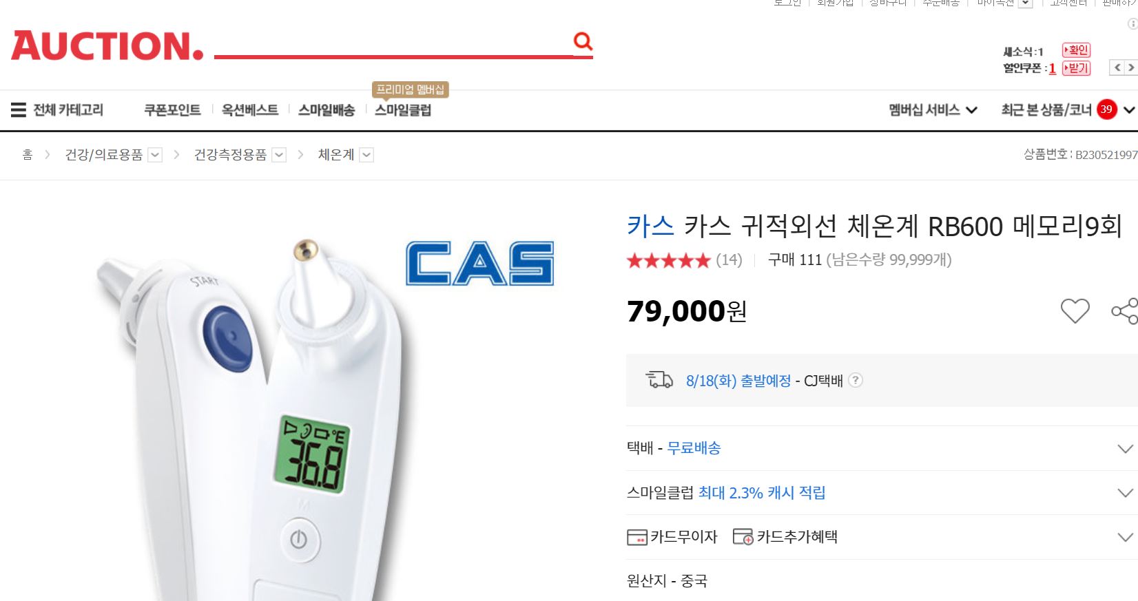 카스의 비접촉식 체온계 가격입니다.