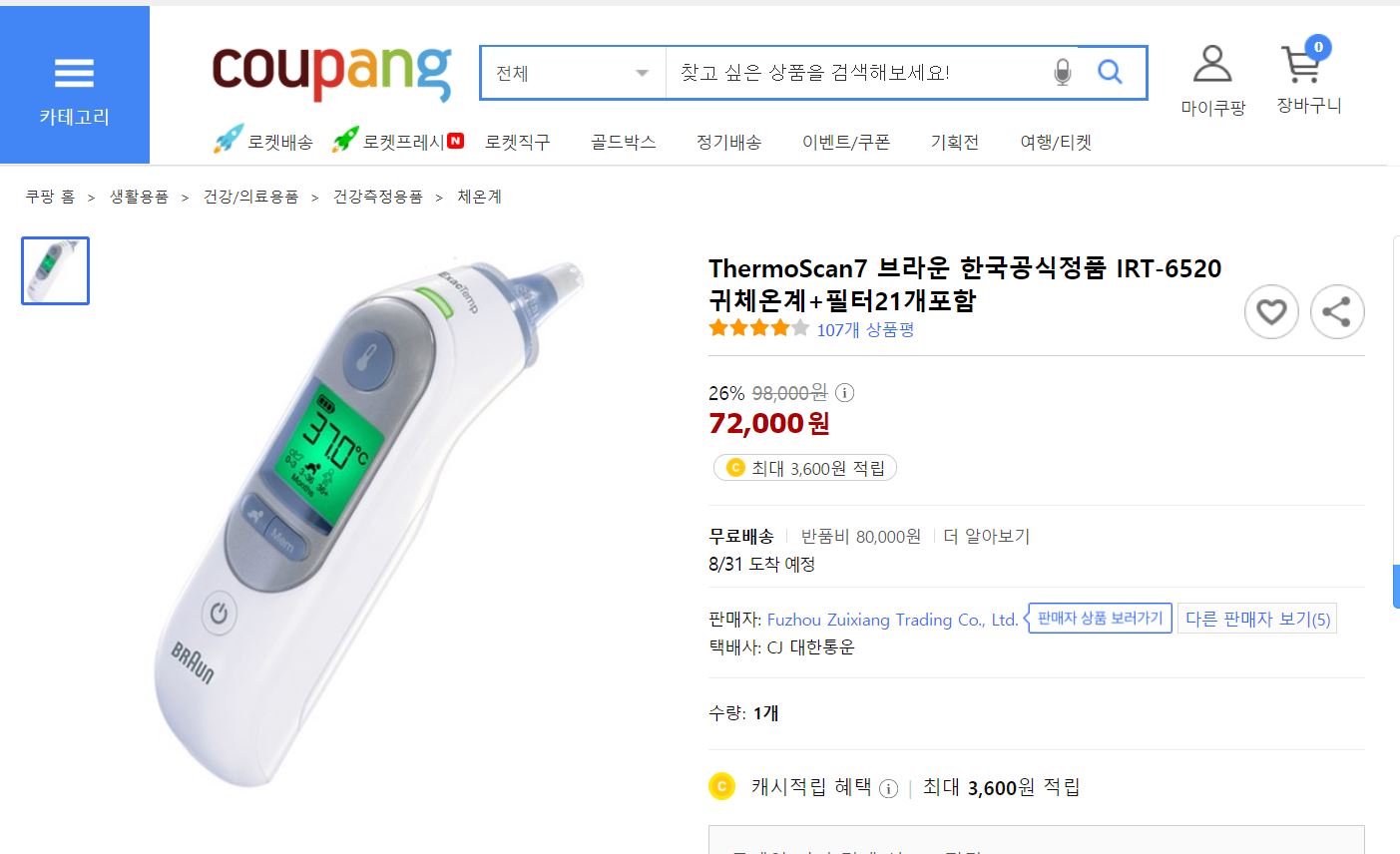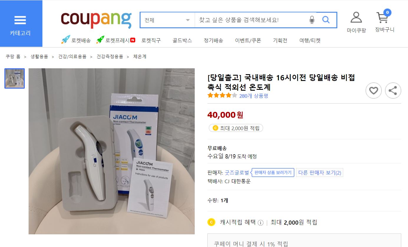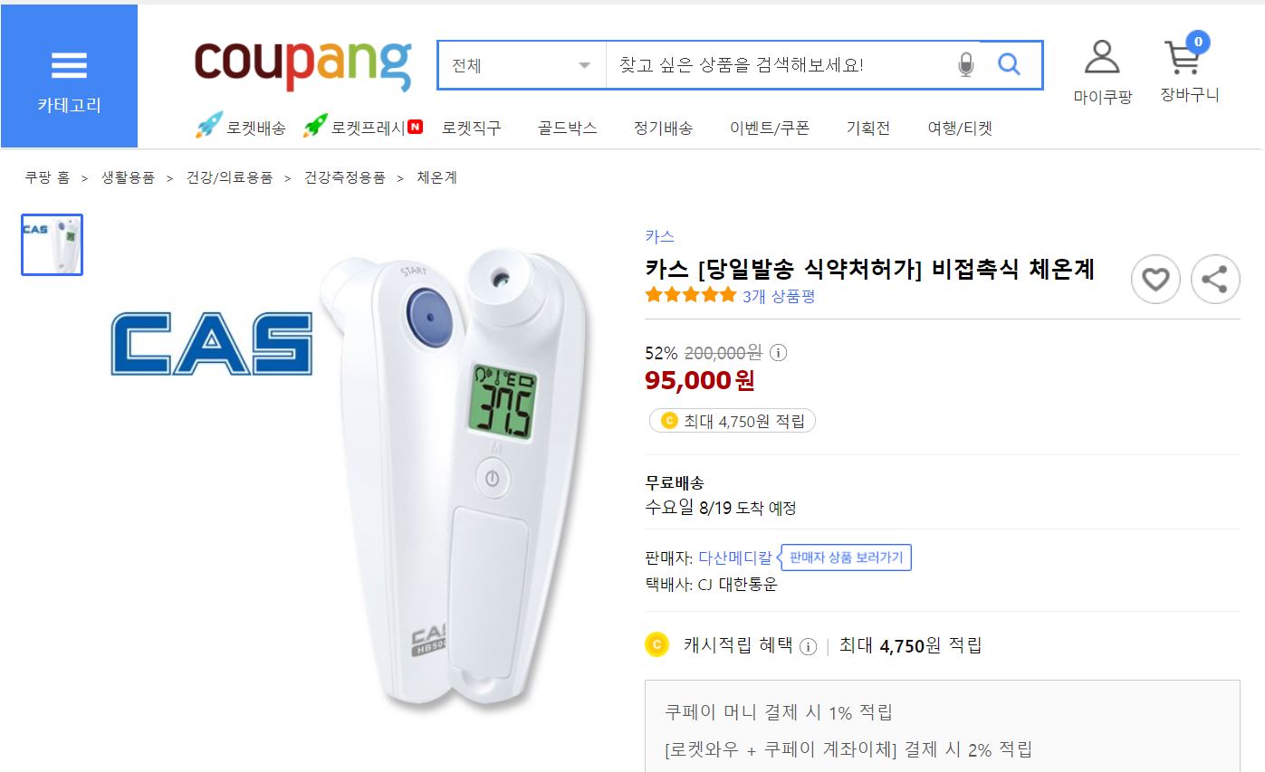 그리고 온도계에서 브라운을 빼면 섭할듯 해서, 쿠팡을 봤는데 접촉식만 보이더군요. 그래서 쿠팡에서 카스를 사는 것으로 결정을 했네요.
