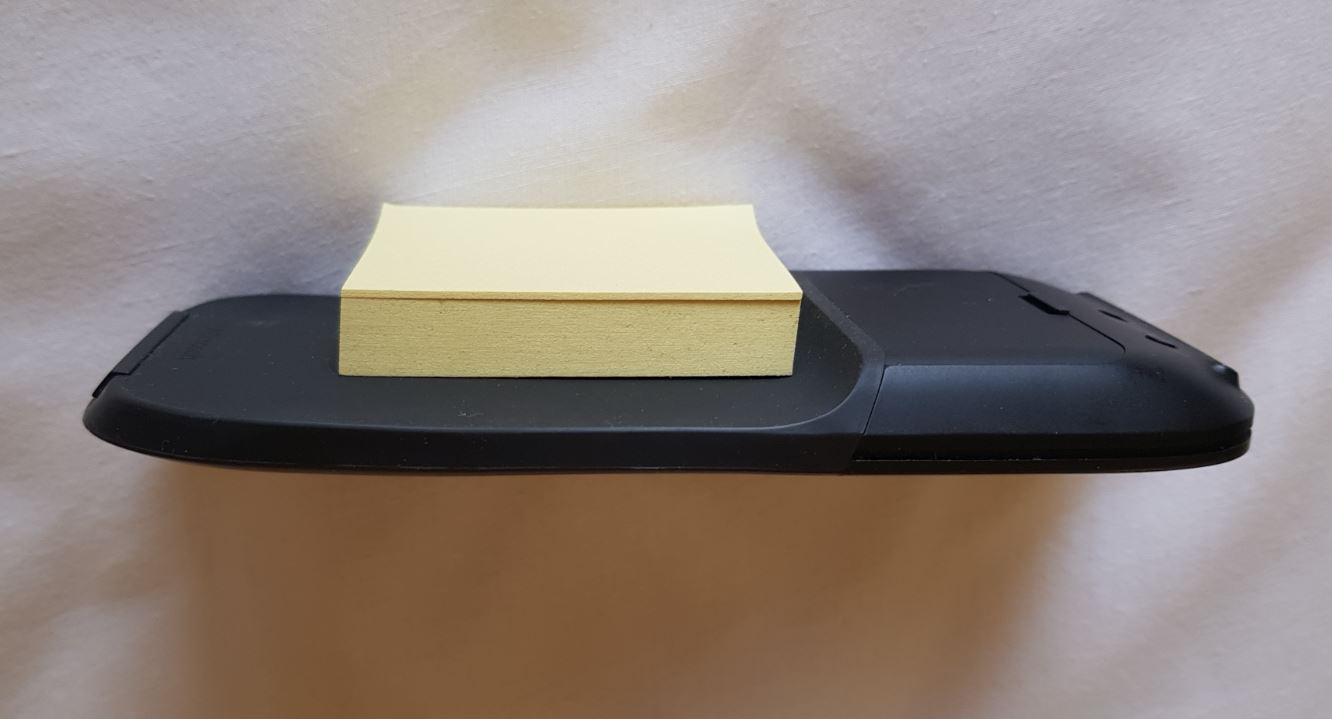 마이크로소프트 아크마우스 두께는 정말 얇고, 사용후에는 접는 구조로 되어 있어 더 얇은 감을 느끼게 하는군요. 새로 구매한 3M 포스트 잇 두께보다 더 얇군요. 이동할때는 이렇게 펴서, 사용할 때는 접어서 사용을 하는 거고요. 단점은 그립감이 좀 나쁘고, 반응이 좀 떨어지는 군요