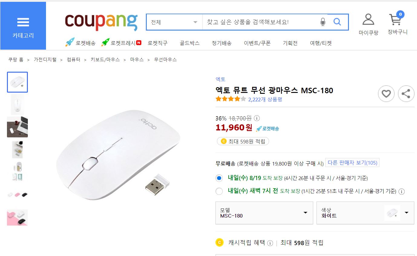 쿠팡에서 가격은 8만원이군요. 쿠팡에서 검색이 계속적으로 옳은 선택으로 보이네요