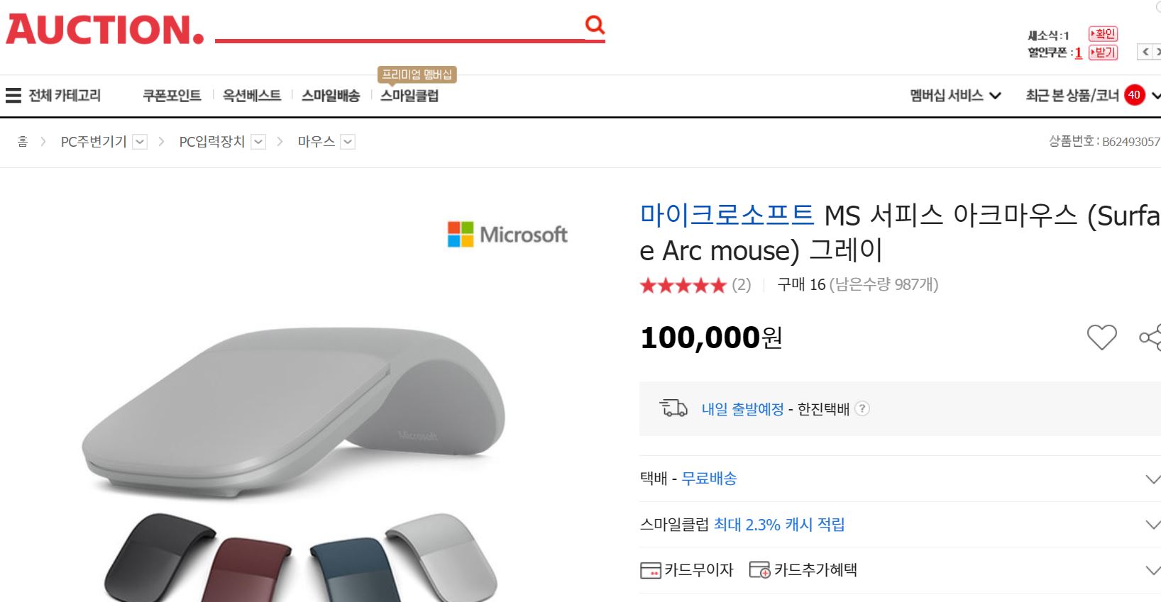 MS 아크마우스가 제일 가벼워서, 옥션에서 가격은 10만원 그리고