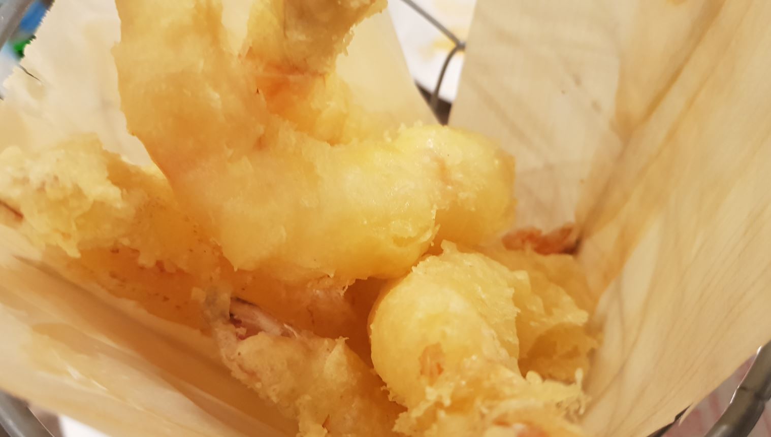 그리고 다음으로 주문한 새우튀김이 나왔는데, 약간 기름지고 빠삭한 느낌은 조금 덜 한 것 같습니다. 사진으로 보니 무슨 사진인 지 모르겠군요.