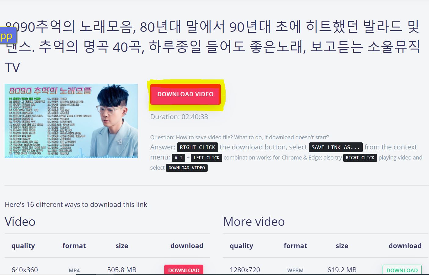 유튜브 동영상 다운로드 사이트를 벌써 3번째나 올리고 있네요. 오늘 제가 기존에 소개한 사이트의 불편함이(속도가 매우 느림, 각종 팝업창 폭탄)있어, 먼저 동영상 다운로드 속도 굉장히 빠른 것에 목표를 두고 찾은 사이트입니다. 직접 한번 시도해봤는데, 462M 대용량 동영상이 한국보다 인터넷 환경이 떨어지는 아랍에미레이트에서 50초 걸린다는 겁니다. 그리고 프로그램 또는 앱을 설치하지 않으면 보통 다운로드 용량에 제한을 두는데 이 사이트는 그렇지도 않습니다. 그런데 이 좋은 사이트가 구글검색에서 왜 나오지 않느냐, 그건 제약을 걸어 놨기 때문입니다.