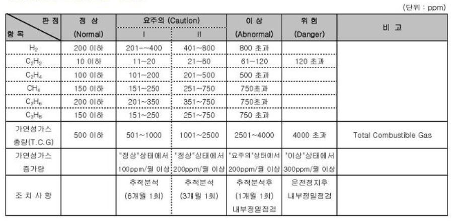 생각해보니 이런 변압기를 관리하는 사람이 별로 없겠군요. 여하튼 간략하게 이야기를 좀 해보려고 합니다. 변압기를 운영하다보면 가장 많이 고민을 하는 것이, 오일이 있는 유중변압기를 관리할 때, 가스가 발생하는 경우 도대체 정비를 해야는지 아니면 괜찮은지 여부를 파악하는 것이 아마도 제일 어렵게 느껴질 겁니다. 이런한 가스가 발생될 때 분석하는 방법은 더욱더 운영자들에게 어려움을 안겨주고 있는 것 또한 현실이다. 국내의 경우 한전이 주도가 되어, 실은 한전에 가장 많은 변압기가 있기 때문에, 가스량에 의한 판정기준을 운영하고 있다. 구글에서 그냥 변압기 절연유 분석이라고 검색하면 한전의 기준부터 각종 기준 또는 분석방법이 쏟아져 나오지만 그래도 여전히 불분명한 것은 마찬가지이다.